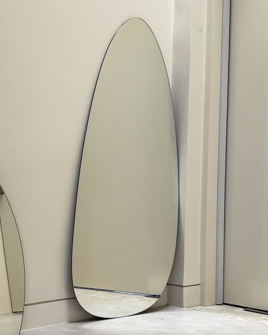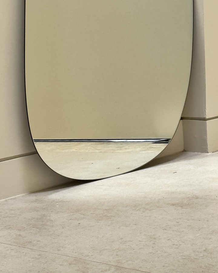 A sculptural statement mirror with fluid, organic lines, ideal for those who love a curated aesthetic. Luna measures 85cm x 165cm and features a frameless egg-shaped design. Equipped with secure mounting brackets for easy wall installation or can be leaned for a relaxed decor touch.